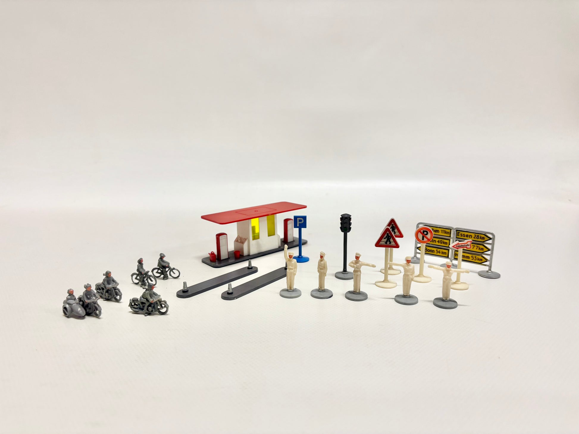 Wiking 1950er Jahre Zubehör Verkehrspolizisten, Tankstelle, Verkehrsschilder usw.